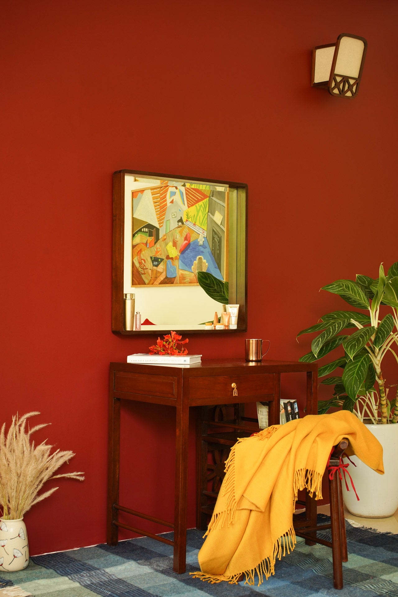 Bàn Valentine có kích thước nhỏ , phù hợp làm bàn phấn hoặc bàn học cho không gian hẹp . Thiết kế kỹ lưỡng nên có thêm một giá nhỏ mỹ phẩm bên dưới để cho bàn luôn được gọn gàng , mix cùng chiếc gương theo phong cách minimalism , tạo nên một góc trang điểm chill cho cô nàng bận rộn .