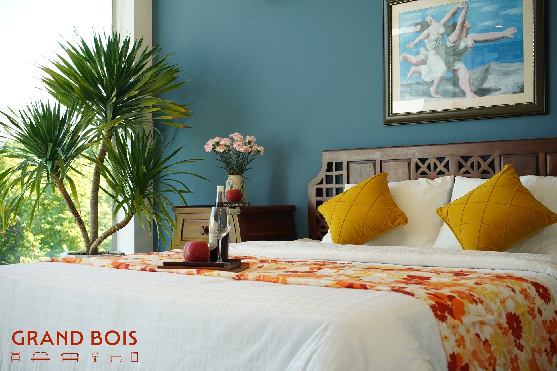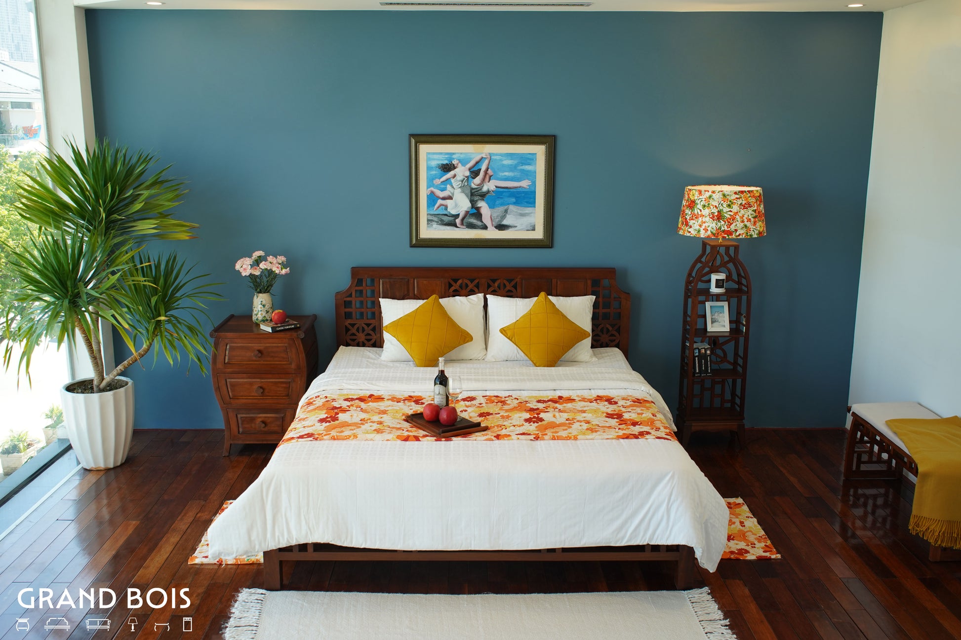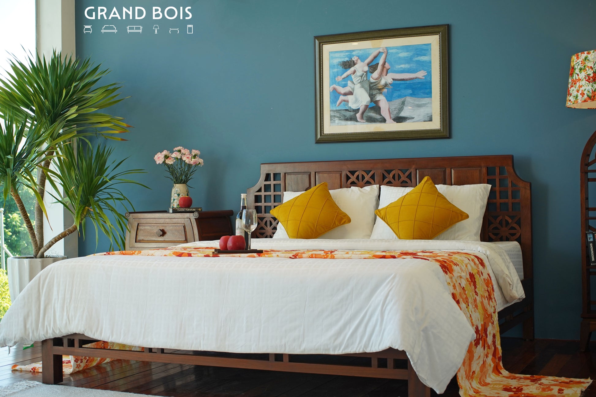 Giường Neo-Dora C : gỗ ấm, dáng thanh, họa tiết Mẫu Đơn… đẹp đến mức khó từ chối.