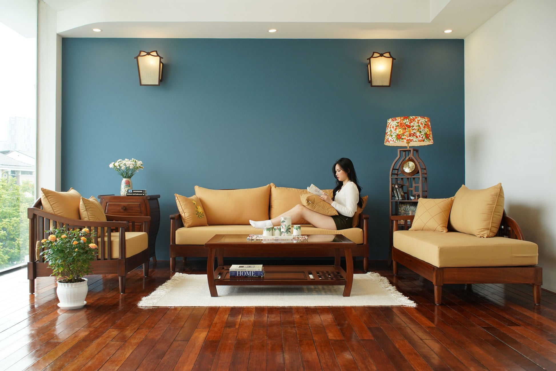Màu vàng ấm áp của Đệm hòa cùng khung Gỗ tự nhiên - chỉ cần nhìn thôi, đã thấy lòng ấm lại.