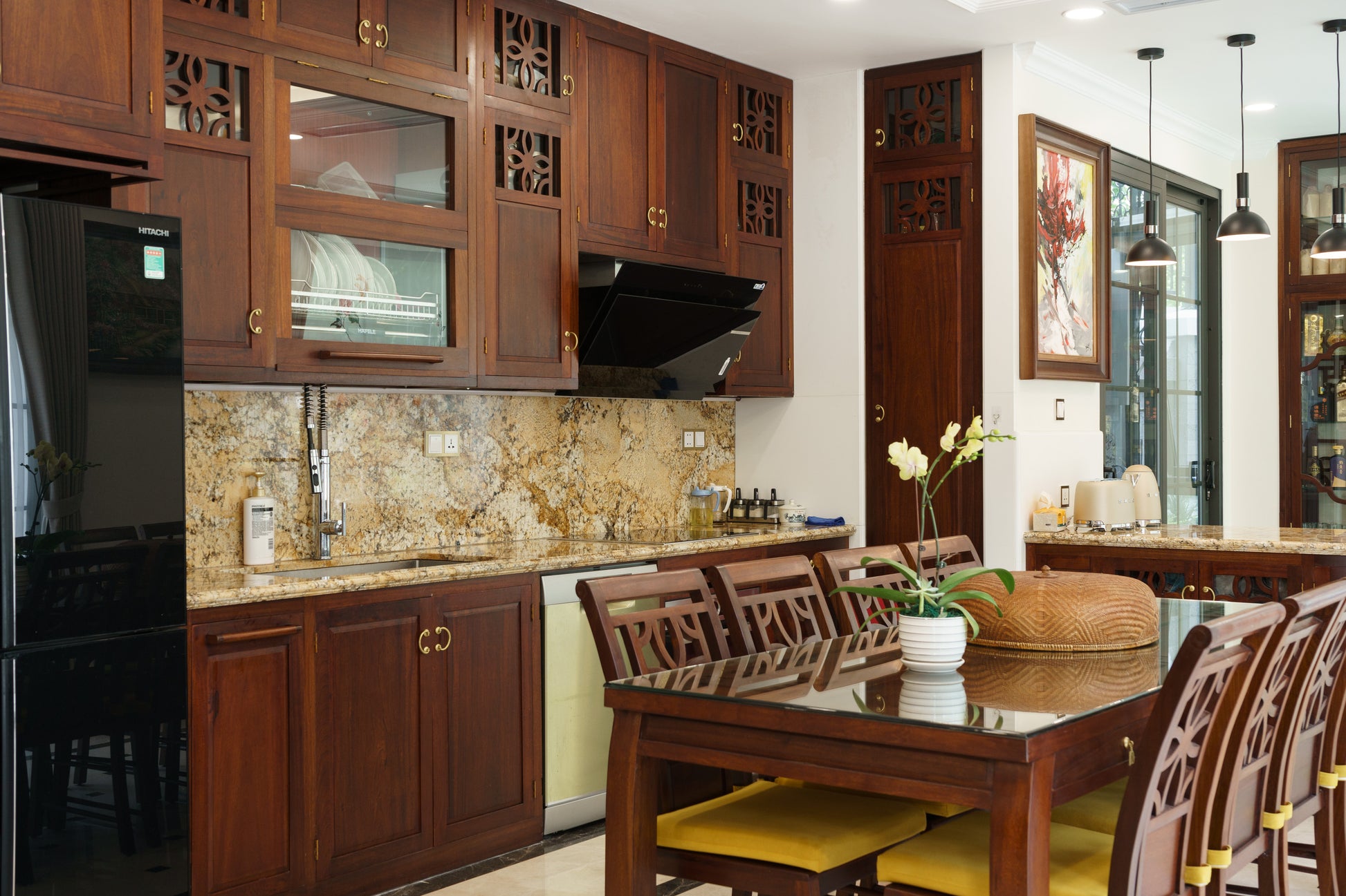 Bếp làm bằng gỗ tự nhiên thân thiện với môi trường và tốt cho sức khỏe. Khi thiết kế tủ bếp, phòng thiết kế GrandBois luôn luôn cân bằng giữa họa tiết, phần kính, phần gỗ sao cho tủ bền bỉ và vệ sinh dễ dàng. Hơn nữa, tủ bếp GrandBois là lựa chọn phù hợp nhất với bàn ăn và các sản phẩm khác của GrandBois. Khi đặt mua tổng thể hàng GrandBois, Quý khách sẽ có lợi thế về thời gian thi công, và sẽ được hưởng nhiều ưu đãi khác.