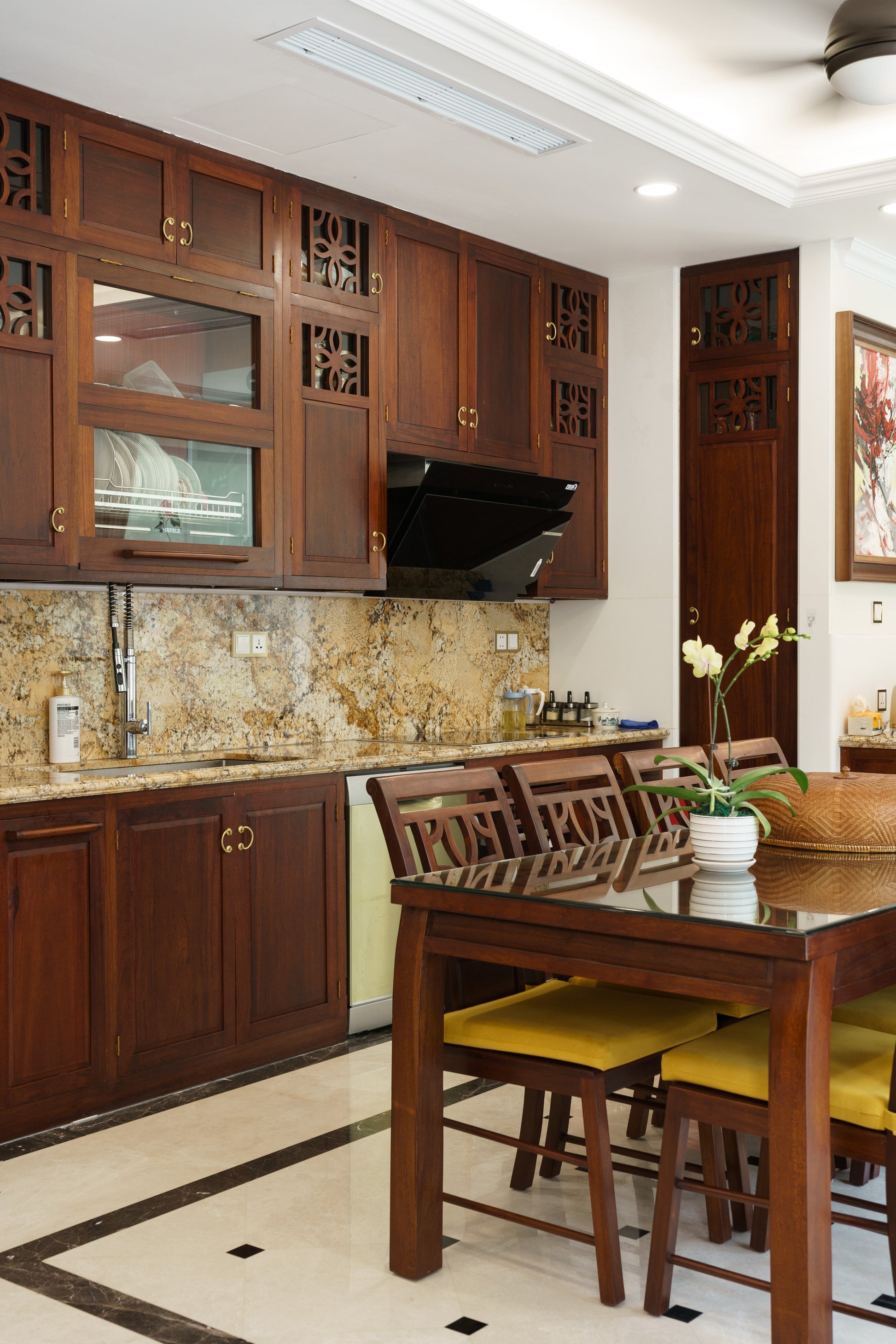 Bếp làm bằng gỗ tự nhiên thân thiện với môi trường và tốt cho sức khỏe. Khi thiết kế tủ bếp, phòng thiết kế GrandBois luôn luôn cân bằng giữa họa tiết, phần kính, phần gỗ sao cho tủ bền bỉ và vệ sinh dễ dàng. Hơn nữa, tủ bếp GrandBois là lựa chọn phù hợp nhất với bàn ăn và các sản phẩm khác của GrandBois. Khi đặt mua tổng thể hàng GrandBois, Quý khách sẽ có lợi thế về thời gian thi công, và sẽ được hưởng nhiều ưu đãi khác.